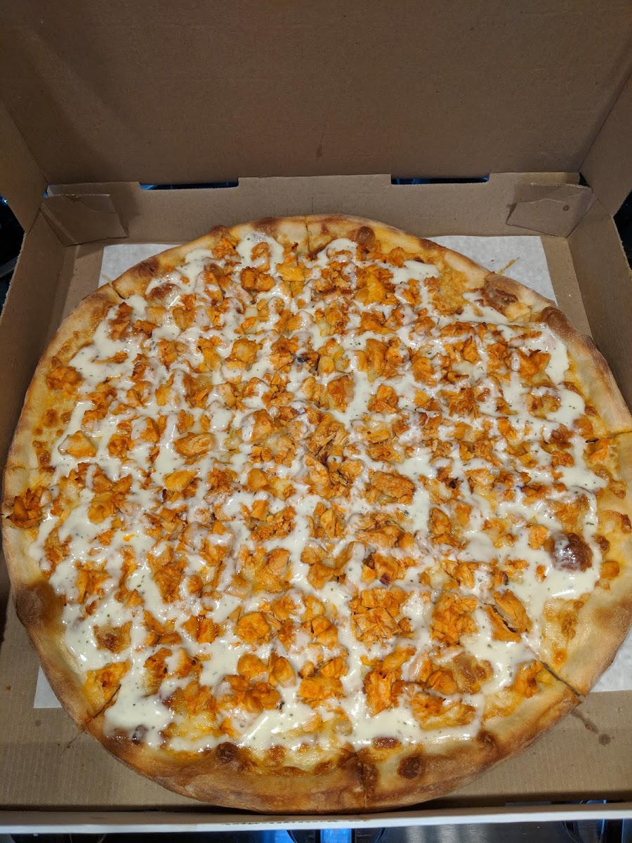 Absolutely loaded buffalo chicken pizza. So tasty and flavorful too, you really get your money's worth. Additionally, the employees are always quite nice.
